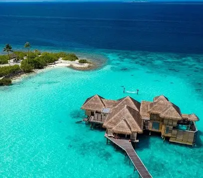 The sunset side of the island offers vibrant snorkeling opportunities, with easy access to some of the most colorful parts of the lagoon and thriving marine life. Dolphins are often seen passing through the deeper channels nearby, making this side a favorite for guests who enjoy marine encounters and magical sunset views.
